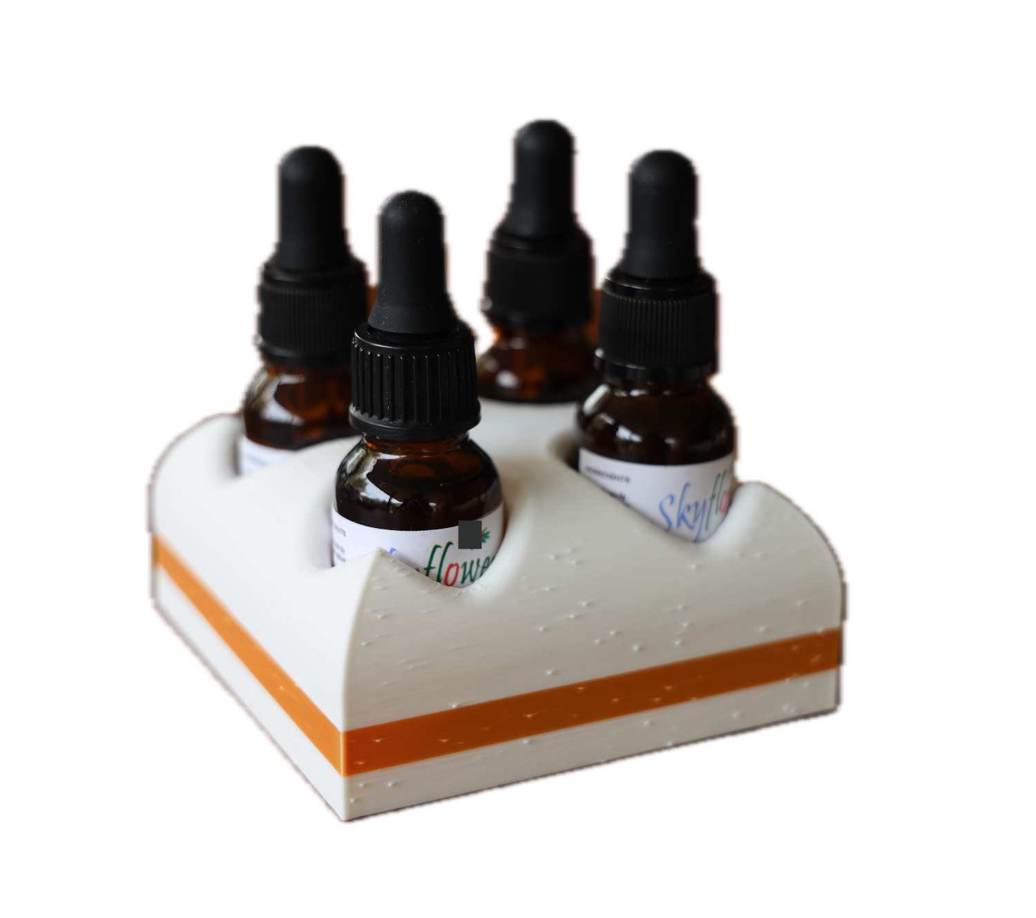 A crate for four flower remedies or essential oils.